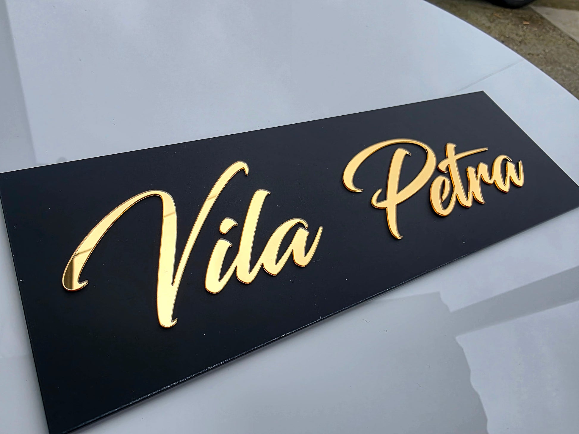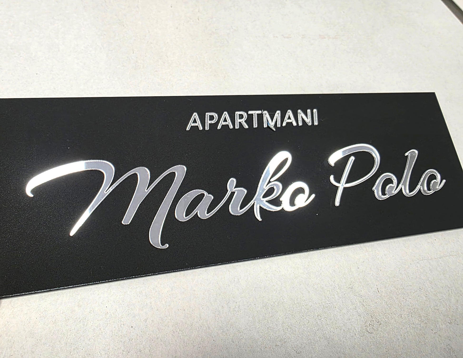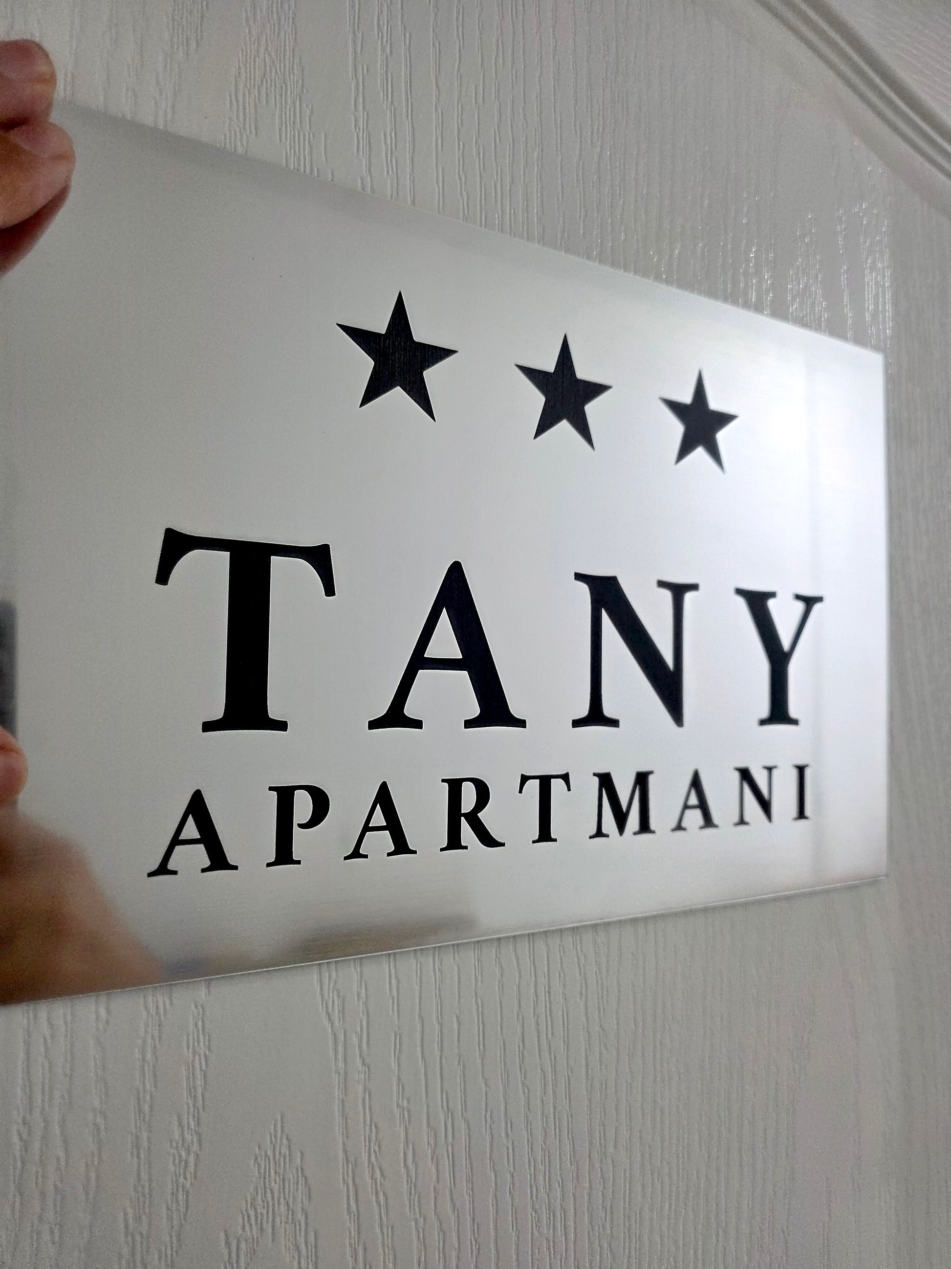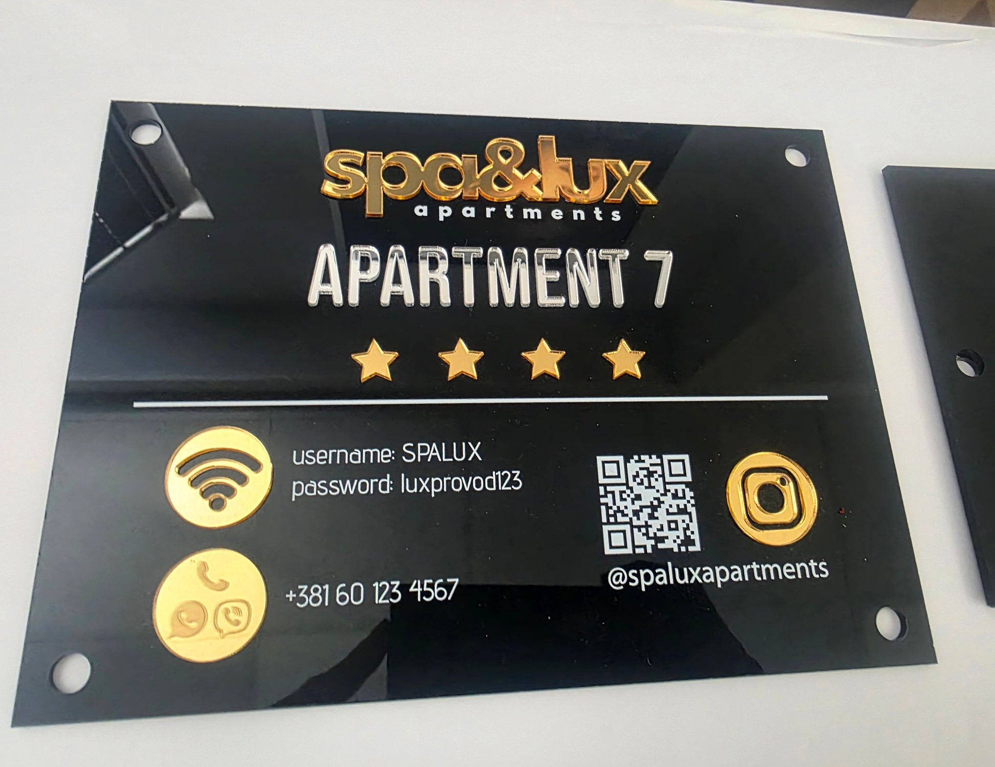 Moderna tabla za hotele i apartmane – spoj elegancije i jednostavnosti. Pleksiglas čistih linija, sofisticiran natpis i dizajn koji gostima već na prvi pogled uliva poverenje i osećaj dobrodošlice.